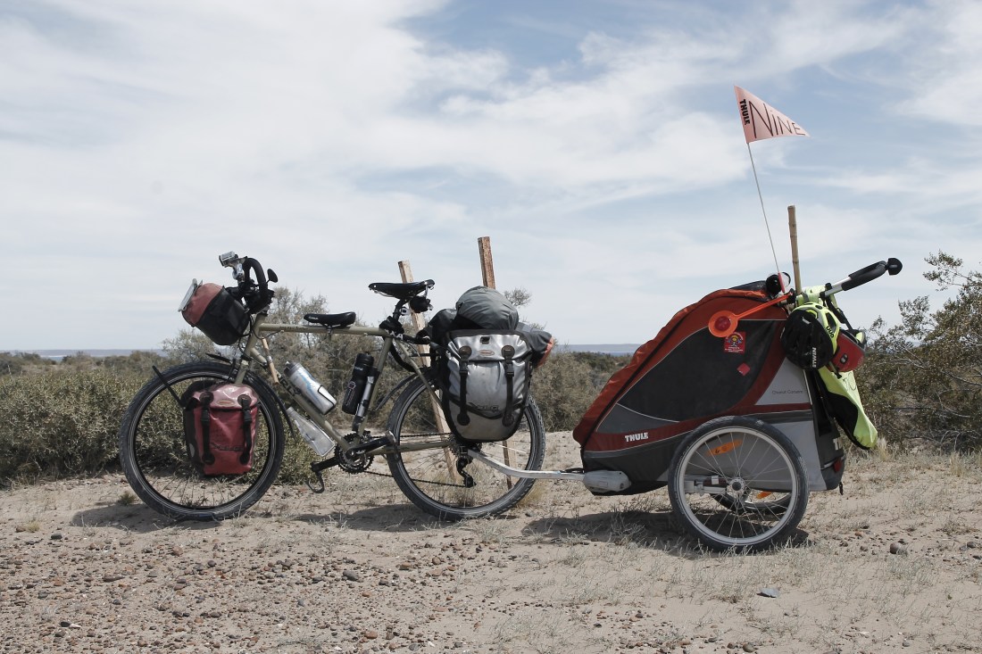 Alors pourquoi le voyage à vélo ? La réponse est dans la question. Parce qu’il y a des paysages qui arrivent à te faire oublier la pluie, le froid et le vent. Parce qu’un bol de nouilles instantanées sous la tente ou une limonade dans une station service décrépite peut suffire à te faire reprendre du poil de la bête. Parce qu’on se rend compte que tout ce dont on a besoin peut tenir dans quatre sacoches. Parce qu’on dort du sommeil du juste. Parce qu’un jour on déplie la carte et on découvre que le trajet effectué uniquement grâce à ses jambes commence à représenter quelque chose. Parce qu’on apprend tous les jours, sur nous-mêmes, sur l’autre. Parce que les gens. Cette humanité que tous les médias s’accordent à nous montrer sous son mauvais côté nous apparaît sous un jour nouveau. Parce que devant la désuétude de cet effort, les barrières tombent plus facilement. Combien de personnes nous ont aidé ? La gentillesse et la générosité n’ont pas de barrière sociale, ni culturelle. Parce qu’on a pu se trouver une famille pour Noël. Parce que l’espace de quelques mois, nous sommes la seule autorité à décider de notre emploi du temps. Parce qu’on n’a pas besoin de savoir quel jour on est. Parce qu’à la fin de la journée, on peut être fier de ce qu’on a fait. Parce que dans l’absolu, tout le monde pourrait le faire. Finalement, parce que c’est un voyage, dans une de ses rares formes authentiques qui existent encore, aussi désuètes soit-elle.